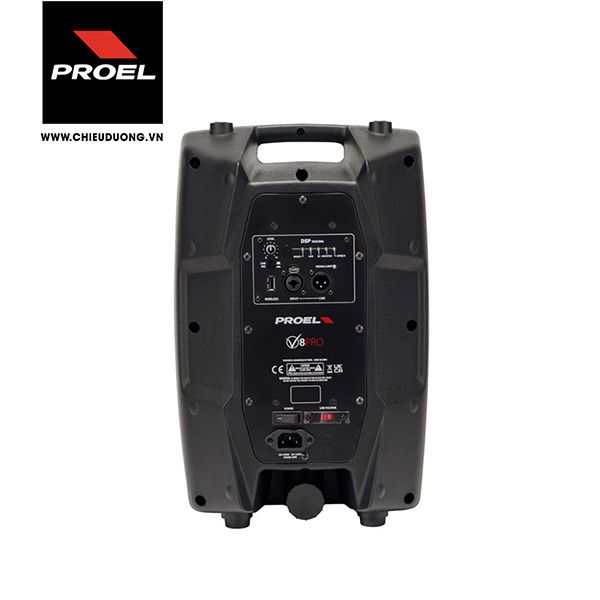 Với bộ khuếch đại Class D 600W tích hợp và nguồn xung SMPS, Proel V8PRO cung cấp nguồn năng lượng dồi dào, đảm bảo âm thanh luôn mạnh mẽ và ổn định ở mọi mức âm lượng. Mạch DSP (Digital Signal Processing) độ phân giải cao với bộ chuyển đổi A/D và D/A 24-bit mang đến khả năng xử lý âm thanh tinh tế, giảm thiểu méo tiếng và tối ưu hóa hiệu suất. Nhờ công nghệ SMPS, công suất này được gói gọn trong một thiết kế siêu nhẹ, biến Proel V8PRO trở thành dòng loa PROEL di động nhất từ trước đến nay. Module nguồn được đặt trong hộp nhôm kín hoàn toàn, đảm bảo khả năng bảo vệ, cách ly hoàn hảo thùng loa khỏi các tác động bên ngoài và khả năng làm mát cực kỳ hiệu quả.
